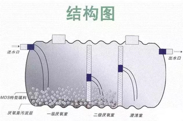 它的工作原理大致可以分為4步:沉淀-厭氧發酵-固體物分解-糞液排放。