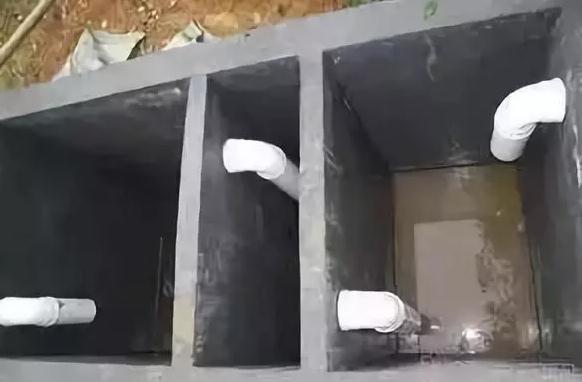 三室通過管道相互聯系,但又被隔墻相互分離。連通三室的管道立面上高低錯落,平面上左右分離,通過巧妙的布局,讓整個化糞池中的污濁物有充分的的時間和空間發酵分解。